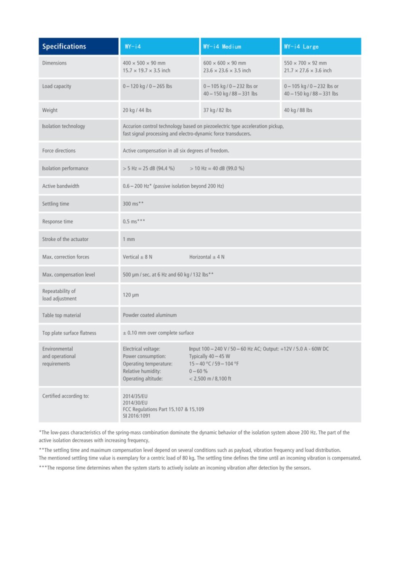 The WY- i4 is a state-of-the-art active benchtop vibration isolation system.Aside from its low-profile carbon design, the Accurion i4 has expanded application capabilities.Main features are the automated transport locking mode and fully automatic load adjustment which makes the handling extremely straightforward.